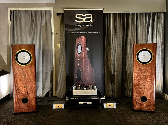 We asked Ken Songer about the innovative and beautiful design of his two models of speakers. He gave thoughtful responses that were detailed, knowledgeable, and sincere. I was impressed with the S1 speaker's sound, design concept, and appearance. Songer welcomed hearing any genre of music selections from guests and encouraged us to play a variety of our music. Ken Sternberg suggested these speakers would be an excellent review subject. I thought this was a great idea too since I have most recently been developing a system around high-efficiency speakers using a SET amplifier design. This is quite a different approach from my long-term reference music system that had used power-hungry Magnepan 20.7 speakers which needed the high-power amp models of the Rogue Apollo and Conrad Johnson Premier 8 monoblocks.