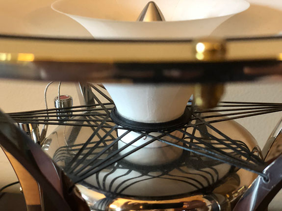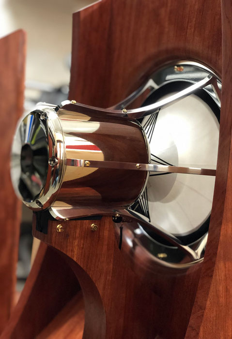 I had previous experience with the field coil speaker models by Classic Audio T 3.4 based upon a radial tractrix horn and two 15" woofers. From my conversations with Ken, I asked about the use of an active field coil driver, and about his power supplies which are made for Songer Audio by Whammerdyne Heavy Industries. He said before WWII, speakers used electromagnetic field coils because sufficiently small and powerful magnets were not yet available. With a field coil driver, the type of wire, the winding, and the voltage setting of the power supply can all be heard in how the speakers produce sound. The Whammerdyne power supplies are dedicated designs for these speakers, that optimize for a pure signal free of electrical and power line noise.