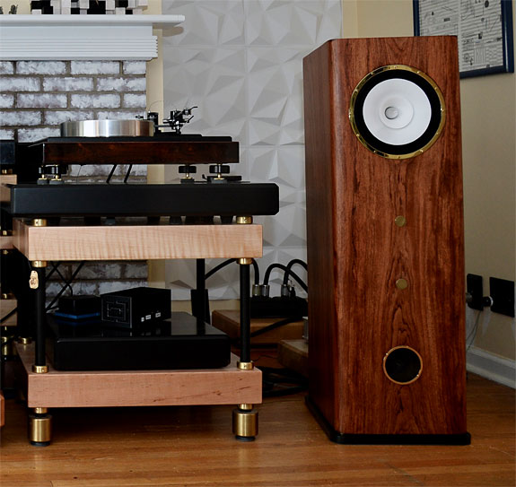 The Evaluation At home, the visual and physical impact of big speakers, giant woofers, and powerful amps was appealing. Now being retired, I attend concerts and hear music from the balcony, audience perspective. The quality of details, transparency with resolution, and sound imagery are just as important as ever, yet my interest and goal these days is for a refined and more distant natural soundstage. I value a fully saturated and layered soundstage with great musical dynamics and realism. When I am listening at home, I want speakers that are fully integrated and coherent throughout their frequency range. I have been enjoying speakers that image and do the point source act of not calling attention to themselves while allowing the fully reproduced sound to arrive in phase and time alignment without the need for elaborate crossovers or the intervention of DSP. I appreciate a speaker with a sense of speed and immediacy with dynamics and transients as occurs with live music. I like speakers that have a beautiful appearance and fit into a room nicely as exquisitely designed and crafted furniture. I used to have a huge system with towering speakers that looking back was too overpowering for our room. My retirement life is about family time and creating a beautiful and welcoming living room to enjoy music in a relaxing way. Since our living room also doubles as the acoustical space for music listening, I want something that is aesthetically pleasing for guests and family.
