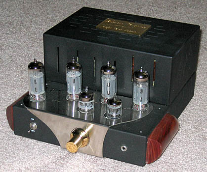 Specifications Power: 10 watts per channel, (stereo) Push and Pull "Class A" circuit Input: One pair of female RCA jacks Output: Four Russian military 6P1T (with special treatment for low noise) Input/Driver Tube: NOS 5670 (USA) Frequency: 6Hz to 80KHz (+/-3dB), 12Hz to 45kHz (0dB) Signal/Noise Ratio: -95dB Distortion: less than 1% at full power Hum: not measurable (less than 0.3mV) Weight: 20 pounds Size: 7 x 9 x 5 (WxDxH in inches) Color: Black metal chassis with hardwood deco AC Power: 120V/60Hz or 235V/50Hz Required break in time: 50 to 100 hours Warranty: One year parts and labor, Sophia electric brand tubes one year, non-Sophia Electric tubes six month