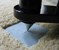But it is the child within an entrepreneur that is creating these marvelous toys for the high end audio arena and the potential for the industry is huge. Listen up. Let's get the stainless steel Isoplatmat out of the way first. It is beautifully finished with a precisely cut, but not razor sharp edge. The name Porsche came to mind as I looked at the highly polished pewter-like finish. This is a 9001:2000 certified company. Like the powder coated aluminium version I previously reviewed (click here), it was still slightly too large to drop inside the outer lip of the Linn platter. Les assured me that the next production run of mats would be downsized a millimeter or two so that it would drop right in. That change will also assure that the mat will fall within the raised outer ridge found on many 12" LPs. That spells progress to me. But there was a significant problem I hadn't foreseen. When I placed the stainless steel mat on the suspended table, the Good Ship Sondek listed heavily to port. I cried out, "All hands to starboard"! But even that didn't help. Actually, the platter dipped heavily toward the back corner of the turntable. The three springs that suspend it could not counteract the additional weight of the heavier stainless steel Isoplatmat and the ERS Record Clamp. The back edge of the platter bottomed out on the stainless steel chassis of the turntable. Not good. When I removed the Record Clamp the platter cleared the deck, but still listed to port. I wasn't about to tear the Linn apart to install stiffer springs to support the heavier stainless mat, so I forged ahead and played a few LPs anyway. The sound was very similar to the excellent results I achieved with the aluminum version. The differences were so small that they could easily be attributed to the tilt of the table rather than the different material of the mat. I would need to find a non-suspended table to compare the two.