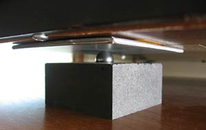 You see, this material is only about 3mm thick, a feature that is both a positive attribute and a negative one. On the down side, you cannot achieve maximum benefit by merely setting a CD player or amplifier on the squares. The feet of most components do not transmit or suck out vibrations from the component as well as the SDS does when it is in direct contact with the chassis of components. For the 3" squares to contact the bottoms of the components, they must be held up by blocks or other footers to raise the component high enough for the feet to lift off the shelf. I tried small wood blocks and aluminum blocks as well as well as more sophisticated footers such as the Boston Audio Design TuneBlocks and Symposium Acoustics Roller Blocks in various shapes and sizes. Wood and aluminum blocks worked OK, but there was an additional benefit when the SDS squares were combined with the TuneBlocks or Roller Blocks. If you already have sophisticated footers under your components, don't consider them obsolete. Combine them with the SDS and you will be at, or very near, the State of the Art in this category.