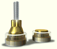 The Soundcare Spikes are basically designed to replace typical sharp pointed spikes while eliminating the main drawback of most available spikes, namely of that sharp point. More exactingly the sharp point is moved internally, is not visible and unable to cause damage. To back up a step or two. Typical spikes can easily create damage with their pointed end by digging into or scratching nice wood shelves and flooring. Because of this many companies designed various miniature cups or discs (coin size) for the spikes to fit into and protect the underlying surface; this reportedly works just about as efficiently. Obviously it's not a good idea to lose the cups or discs. Soundcare has basically taken that protective cup made of hardened steel and embedded it a zinc base. Let's call that the bottom half of their "spike". They similarly did the same with the hardened steel point embedded in the top half. All is surrounded by a tough ABS plastic manufactured in a manner that keeps the "point half" and the "cup half" together, but free to move slightly - when little pressure is applied. As a result, the spike and cup are hidden.