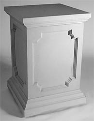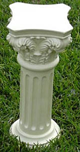 The ultimate concrete block is architect Frank Lloyd Wright's open-patterned Millard House Lantern Textile Blocks, available at Target, but the cost for four of them puts the decorative blocks on par with other options... Nurseries and garden shops sell white-stone pedestals in classic Grecian-styles for plants and statutes. They are two to three feet high, not too wide and heavy - they don't need filling with sand; they are sand themselves.