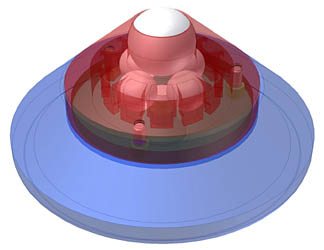 It Ain't Over Till It's Over Just about the time I was ready to wrap up my original review, Steven R. Rochlin, my favorite Enjoy the Music.com™ editor (Editor Steve sez: compliments will get you anything :-) ), comes out with another review of Symposium Rollerblocks and shelves that not only clarified and simplified my review of a year earlier, but broke new ground, proclaiming improved performance by inverting the Rollerblocks, i.e., placing the stainless steel plate on the shelf, rather than on the bottom of the component. This I had to try for myself. I reversed the Series II Rollerblocks under my CAT pre-amplifier, and sure enough, ol' Steverino was right! And the bar was raised another notch. I hit the "delete" button on my original review and started playing with the Stillpoints again, this time using them point down on the stainless steel plates borrowed from the Rollerblocks. Sure enough, they improved another notch and once again seemed to be on a par with the Symposium Rollerblocks in the inverted position. Adding a Symposium Svelte Shelf, and even the less expensive Isis shelf (with some lighter components), compounded the benefit, as Steve also reported. I substituted some 2-inch squares of 0.5-inch thick Corian for the stainless steel plates and found a similar, but slightly more woody improvement. I even used the Stillpoints ball-down, directly on my solid maple shelves to very good effect. The point here is that you can and should experiment with different materials and different orientations-ball up/ball down-to achieve the sound that works for you in your system. While I went back and forth between the Symposium Rollerblocks (with the Tungsten Carbide upgraded balls) and Stillpoints (with risers) under my CAT preamplifier, this was no shoot-out and there are no dead cowboys in the mud on my listening room floor. Both of these products are excellent, and I would be amazed if I could pick up on the difference if Linda were to swap them around in the middle of the night, unbeknownst to me. I would also be remiss, however, if I did not mention that it is much easier to position the Stillpoints than it is the Rollerblocks, with their separate ball and block. But since this is not something that you do every day, unless you are extremely fanatical, this should not be a big issue. Installing either can be done alone, but an extra set of hands can make things go more smoothly. I was quite reluctant to try the Stillpoints under my old Linn turntable since the bottom is merely un-tempered Masonite, and I thought the ceramic ball would merely dent the Masonite and prove ineffective. Three-point balancing was also a concern, although the Stillpoints are available in sets of four. But with the discovery of the benefit of inverting the Stillpoints, I gathered enough courage to insert a set of three Stillpoints with risers, point-down on the 3/8-inch thick aluminum leveling platform I use. Again, another huge gain in focus, perhaps equivalent to the replacement of the original felt turntable mat with the ultra-high-value None-Felt mat. But don't scoff-the cumulative benefit of the None-Felt mat and the Stillpoints is more than a thousand dollars less expensive than upgrading my Linn from the Valhalla to the Lingo power supply. For even more improvement, I added the Symposium Svelte shelf between the Stillpoints and the aluminum platform. Another possibility I was reluctant to try was placing the Stillpoints under loudspeakers. My Coincident Partial Eclipse Series 2 loudspeakers improved significantly when I placed them (sans spikes) on the relatively inexpensive Symposium Isis platforms, so I had reason to believe the Stillpoints would be effective. My reluctance was based on fear of instability. The footprint of the Coincidents is small relative to their height and center of gravity, and the use of three-point balancing would reduce the footprint even further and make them vulnerable to being toppled. (I like to listen in the dark, and I have to pass closely by the right loudspeaker to change CDs and LPs). The Kharma Ceramique 2.2s, however, have a much larger footprint, and a lower center of gravity. Removing the SDSS stands, I tried the Kharmas on Stillpoints, but found them no better (but certainly less expensive) than the integral SDSS stands. Considering the liability and stability issues, I urge you to think carefully about using the Stillpoints in this manner. I feel a lot more secure with the Kharmas mounted on their outrigger spike stands, or the Coincidents flat on the Symposium Isis platforms. With my listening sessions with the Stillpoints completed, I returned to an early email from Allan, which I thought contained a white paper on the product. Instead, I found this beautiful, three dimensional graphic that reveals the internal design of the product. It shows the four internal ceramic balls and what looked like a smaller sixth ball below them.