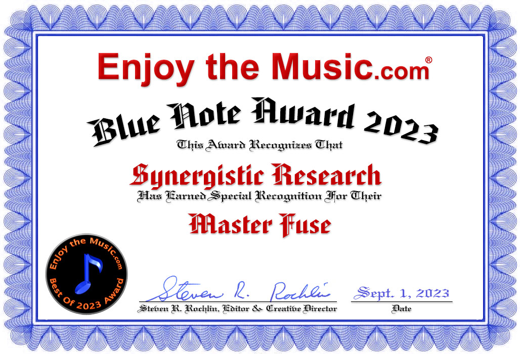 Summary As reviewed here, without the recently acclaimed LessLoss BlackGround 10X in the house, all my components (see my bio page here) fall in the "under $10k" category, except for my speakers. It is far from an ultra-expensive system. I would be very hard-pressed to spend $595 in any other way to raise the sound quality of my rig into the realm of systems costing hundreds of thousands of dollars. Unlike TV commercials that promise to "save" you money on expensive commodities, the Master fuse may very well inhibit you from buying more expensive components once you realize the potential of what you already own. If it were not for my insatiable curiosity, I could call it an end game right now and get off the upgrade merry-go-round. The Master fuse is one of four state-of-the-art components in my system. I'll be reviewing this fuse again this summer when my audio buddy receives his PS Audio DirectStream DAC Mk2 and we can compare using the Master fuse in the original DirectStream DAC as well as the Mk2. We will also be able to compare using two Master fuses in his system. Stay tuned. If $595 seems like too much for you, I urge you to take a leap of faith and trust your own ears within your audio system. The 30-day money-back guarantee is there to protect you. Don't be afraid to use it if you're not satisfied. From what I've seen and heard since the pandemic, this should be the hottest product in high-end audio. If you're attending AXPONA you may even hear Ted Denney demonstrating the Master fuse in the room they share with Scott Walker Audio. May Thor throw lightning bolts at any vendor who uses Master fuses in their presentation without conspicuously declaring so. The Master fuse has put me closer to live music than any rig I've heard that didn't cost hundreds of thousands of dollars. It's the way back to Coolsville.