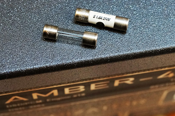 The Burn-In I installed the Slo-blow 1.6A in the LampizatOr Amber 4 Stereo DAC / Preamplifier, replacing the clear-glass OEM fuse. I left it on 24/7 and checked it every day or two with my compilation CD. I won't drag you through the details, but to say that I was greatly relieved when at 175 hours it finally came into its own. A day later it was a little better and beyond that the differences in recording quality dominated. So, figure on about 200 hours (8 days). It would be a good idea to get it cooking right away when you receive it if you want the security of the 30-day money-back guarantee. A second fuse, a Slo-blow 1A, was put in the huge power supply of the Coincident Statement Phono Stage, replacing a Purple fuse this time. Again, I let it burn in 24/7. And a third fuse I delivered to my good audio buddy, Tom, to install in his PS Audio DirectStream DAC. He is also due to receive the new Mk2 version of this DAC in another month. A comparison of the current DirectStream DAC (equipped with the Master fuse) will provide a valuable comparison with the Mk2 version, as well as tell us whether the Master fuse will benefit that newer DAC. (Stay tuned for a follow-up in a couple of months.) I can also review the use of two Master fuses in his rig with a slo-blow 1A fuse in both his DAC and Backert preamp, giving me a second opportunity to compare the use of more than one Master fuse in a system.