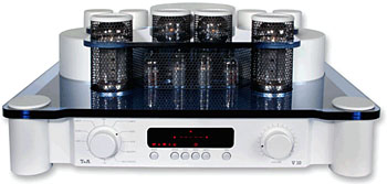 V10 tube integrated amplifier Type: tube stereo integrated amplifier Output Power: 80 Watts/channel into 8/4 Ohms (110 Watts peak) Frequency Response: 8Hz to 100kHz Harmonic Distortion: <0.05% @ 1 Watt Signal/Noise: >100dB Channel Separation: 100dB Inputs: four line level plus tape circuit Features: High/standard valve bias voltage settings for low & high level replay Weight: 25.8kg Dimensions: 186 x 443 x 378 (HxWxD in mm) Remote control - included Price: £4,000
