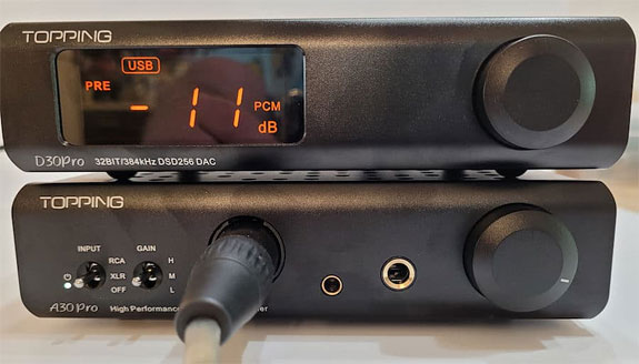 Unless you need DSD and MQA support, the D30Pro can handle 95% of the digital music currently available. The A30Pro has more than enough power for the types of headphones you would use with it. The overall tonal balance is balanced and clean sounding and the more I listened to it — the more I realized that far too many audiophiles are obsessed with numbers, statistics, and measurements that don't tell the whole story. If you want a desktop DAC and matching headphone amplifier that can really perform with some of the best headphones around — the Topping D30Pro and A30Pro combination is one helluva smart purchase and one you will be unlikely to regret for any reason.