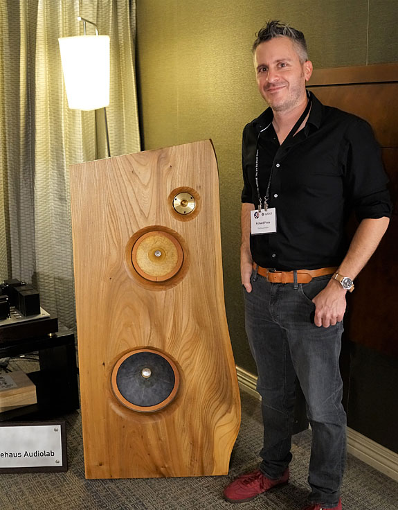 Walking into their room awakened my life-long roots in the furniture industry as well as the Adirondacker in my soul. Two tall slabs of live-edge lumber stood as open-baffle speakers equipped with full-range field-coil drivers from vintage German theater speakers. They had been fully reconditioned and supplemented with a vintage 12" field coil woofer and modern super-tweeter making them realistically full-range. Even more to my liking, they were driven by a tube preamp and tube power amp, also of Treehaus manufacture. Listening to the fine quality of the music, I was stunned to learn this was their very first show — ever! I talked with Rich Pinto, the designer, and made it very clear I wanted to review his speakers and had both tube and solid-state amps to drive them. He, in turn, let me know he really wanted to have them reviewed with amps other than his own.