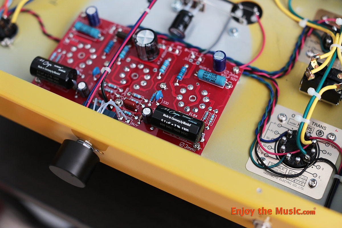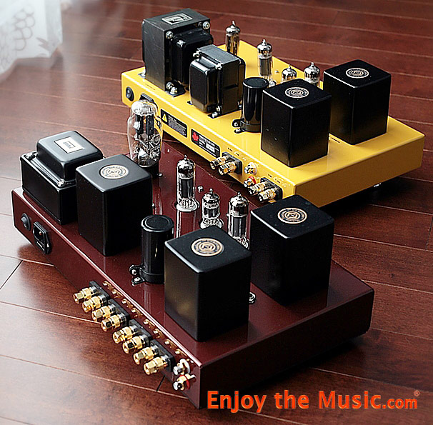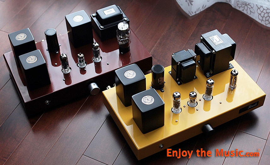 and occasional goose bumps were proof. The red amp in the photo seems like it might be a different model, but it is also a Finalé F138-FXX. The new owner wanted a complete set of binding posts for 4, 8 and 16 Ohm speakers, as well as the larger 5AR4/GZ34 rectifier tube rather than the 6CA4 tube used on the yellow one that eventually came to me. You will also notice the RCA inputs have been moved off to the side on the red amp, rather than placed between the left and right speaker binding posts. This brings up an important point about Triode Lab. They have different models, like larger companies, but they are an artisan workshop that is small enough to cater to your specific needs. Moreover, they are extremely knowledgeable about tube amplifiers and the parts that go into them. For example, do you prefer Amtrans insulated/twisted gold plated solid core OFC or Belden silver plated solid core signal wires? And if you don't know the difference, they can guide you toward the proper choice if you can articulate the kind of sound you are looking for and what speaker you will be driving with the amp. That kind of flexibility and service isn't available from the big boys. On the other hand, you won't get uniform, engineered packaging with model names and logos printed on the box either.