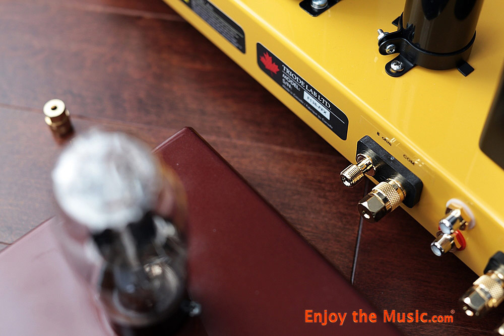 cost), but it hasn't been available since 2011. There was only a single set of speaker cable binding posts; gold plated Cardas in my unit, or CMC posts with the plastic covers required in Europe are both offered. The binding posts are on both sides of the RCA inputs and there is not a lot of room between them. I was able to connect two sets of JPS Labs speaker cables with spades to each post when I ran the Tekton Lore Reference with vintage Tekton subwoofers, but it was not fun with these stiff cables. A screw driver with a hex socket was helpful to snug down the binding posts sufficiently even when only attaching a single cable. There is a standard 1/4" headphone jack on the