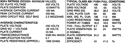 Power output is 15 Watts at the onset of clipping (about 0.7V input) and peak power is around 35 Watts. That sounds pretty wimpy, but these amps even drive my Magnepans well. I think the reason is the gentle distortion characteristic of the triodes. I found myself turning the volume control up a notch or two from my usual setting with my Dyna amps, and distortion was not much of a problem, even though input sensitivity was greater. Treble is clean as a whistle. No transistor grit, no pentode edge, as Mike would say, "triodes are sweet". Midrange is present and well blended on both the high and low end. Female voice is in phase and realistic. Cellos show their marvelous buzzy idiosyncrasies. Bass is bloody marvelous! I can't believe the clarity, detail, attack, punch and all those other adjectives. My basses really growl and groan, and my Tyrnpanis hit my beer belly. I thought this would be a nice cool jazz and chamber music amp, but I find myself re-listening to Count Basic's big band and Beethoven's Ninth. These are going to be hard to part with. I wonder what four 6CK4's in push pull parallel would sound like? Come by and hear 'em before they get sold.