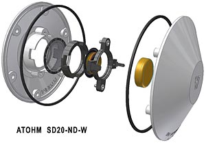 Makers of their own Atohm drivers, and unable to use conventional wadding to dampen the speakers output owing to their choice of transparent cabinet material, the mid-bass drivers are inset into their own enclosures just large enough to contain them and tame the back output of the drivers. The mini-enclosures are, however, vented, with bass supplemented by a passive radiator positioned in the base.