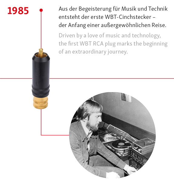 For over 40 years, WBT has built its reputation as a benchmark for innovation, precision, and audiophile excellence. Founded in 1985 by Wolfgang B. Thörner in Essen, the company set out to eliminate the weak link in high-end audio systems by developing superior connectors. Their journey is marked by a series of technological leaps that not only revolutionized connection quality but also redefined manufacturing standards in the audio industry.