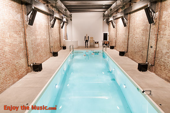 Then about halfway up a short open staircase through a glass wall I saw an indoor pool, which is said to be one of only 11 private pools in New York City. Surrounding the pool are a host of McIntosh components, obviously placed there for those either in the pool or gathered around it to enjoy music in this rather unusual but beautiful urban setting.