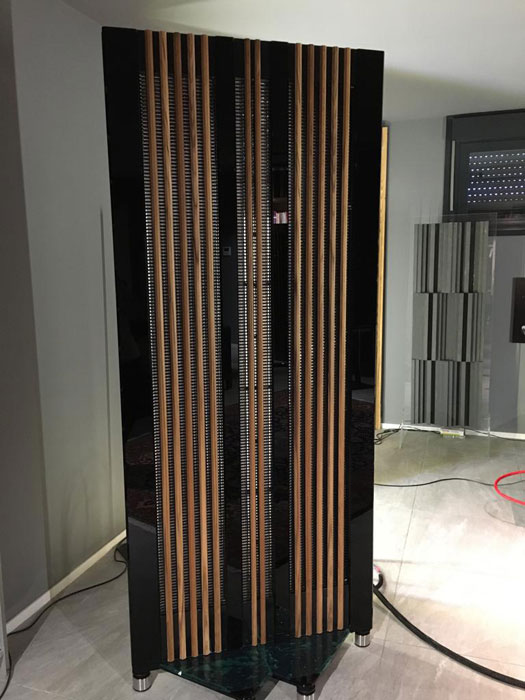 He had also begun to pursue a DIY approach to a dipole line source, a concept that made a great deal of sense to him, and such endeavors soon began to consume the bulk of his disposable income. By 1984 he had begun working on the diffusion of sound in a room using cone loudspeakers mounted on a flat baffle. The results led him to study the technology of ribbon drivers, specifically those used as midrange-tweeters. This work eventually led to his designing a ribbon loudspeaker for a product from RES Audio in 1994, the Sky 1. In 2005, while designing their Sky 2 ribbon loudspeaker, he was inspired to implement neodymium magnets, a modification that led to an order of magnitude of improvement in the driver's sensitivity. By 2009, his first ribbon panel woofers had appeared, and the ongoing march of technological progress soon allowed these ribbon panel woofers to achieve sensitivity comparable to that of the ribbon and neodymium magnet mid-tweeters. The ongoing developments of new ribbon loudspeakers from Daniele's workshop since 2016 have gradually made it possible to create a loudspeaker that reproduces the entire audio spectrum using only ribbon drivers, without any dynamic transducers!