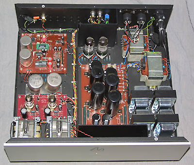 Of course like all top end products from Audio Note, there are many filter-interface coils/transformers wound with their pure silver wire and extremely high content nickel mu-metal cores. As you can see above there are a total of twelve coils/transformers. Top-grade Elna power capacitors are used for the main power supply (center) while the tubed analog boards (bottom left) use very expensive high-quality Black Gate capacitors. The usual bit and pieces (or at least usual for a top-range Audio Note product) grace the remainder of the unit. This, plus a very sturdy case brings us to a weight of 22 kilograms (almost 50 lbs.)! Most multi-bit Japanese CD players weigh in at around two pounds total. Make of that as you will. In contrast, the top rig DAC5 Signature ($55,000) is all silver, has "better" Black Gates, silver wire everywhere, plus an improved power supply and Audio Note carbon resistors plus the silver wires super interface. Back to our story... The DAC 5 Special analog section employs an upgraded M6 Line pre-amplifier output stage with two anode followers after another using a single 5687 double triode per channel. Of course this is coupled to an output transformer, though this time one with copper wire on a High B C-core which they claim is equivalent to the quality of the cores in my previously owned Ongaku! Alas, the Ongaku now resides in someone else's home as my personal finances took a nose dive a few years back. i miss it greatly. Anyway...
