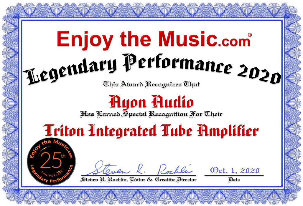 Conclusion If you get down to individual component parts it looks to me that everything from the hand assembled Teflon wiring to the selection of individual plastic film capacitors is not limited by cost considerations. Yes I prefer one mode of operation to the other. But that does not mean that there is anything wrong with the sound of the pentode mode. 125 watts of Class A power is nothing to sneeze at. Important to remember is that the increased transient speed and articulation of pentode operation is exactly what you might require in a system that lacks adequate definition. Most certainly you will need that kind of horsepower to drive many of the inefficient speakers sold in the high-end market place. There was one last minute experiment to tell you about. I hooked up a cheap subwoofer to the Triton output and that little rumble box sounded better than ever. It did in fact enhance the sound of my two-way speakers. Remember flexible options good no options bad. Again let me express my surprise and delight at the way music is reproduced as piped through 80 watts of Triton triode power. The Triton most certainly knows how to sing in my system I am enjoying myself immensely. It finds the extremely elusive musical middle ground between solid-state speed and the lush glow of single ended triodes it does not sacrifice one to get to the other. Congratulations Ayon Audio, this is a very fine piece of work, far more than just a pretty face. Let me end by saying I want the amplifier the only thing standing between me and the Triton is money. Semper Hi-Fi