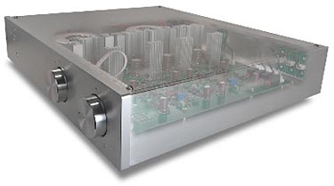 Amplifier The relatively compact PP-160 puts out 95 Watts per channel into 8 Ohms (160 into 4 Ohms) and is housed in the nearly identical to the preamp, rather non-descript, but attractive shiny, silver, with a 17 inch wide, 4 inch high, and 14 inch deep rectangular square-edged cabinet. Its rather hefty 33 pound weight indicated that they aren't kidding about the substantial custom built low-noise torroidal transformers and other power supply goodies that they've packed into its cabinet. On its rear panel are unbalanced RCA inputs and fairly heavy-duty speaker lugs and an IEC socket for the removable AC cord.