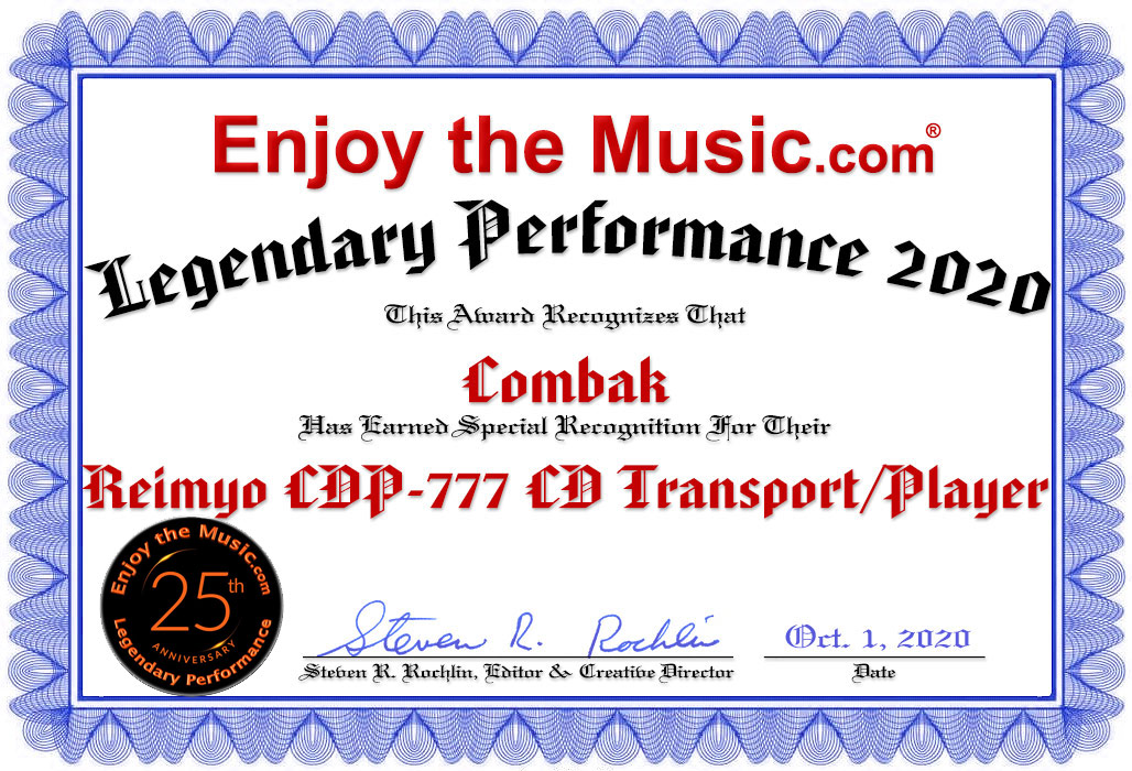 But Is It Worth $17,000? I also cannot answer the question as to whether or not the Reimyo is the "Finest Transport/CD Player Ever Invented" as I have not heard all of the top contenders in my system. I can say without a doubt that it is the finest player ever to grace my system. Until the arrival of the CDP-777, my listening time was broken down 75/25 between vinyl and digital. With the Reimyo in the system, this ratio dropped to 50/50. That in itself says a lot. My hat is off to Kazuo Kiuchi and the rest of the Reimyo's design team. Well done.