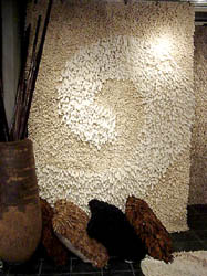 A similar treatment uses various yarns to create sculptured patterns with a loose weave that should also be very good at absorbing sound.