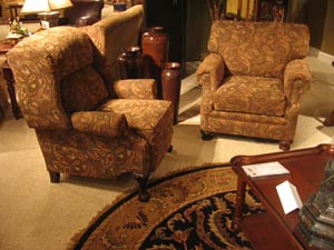 These club chairs from Clayton Marcus revive the paisley designs popular in the 1960's, but with a more mature color palate. You will not have trouble finding this fabric on a wide variety of chairs at almost every price point.