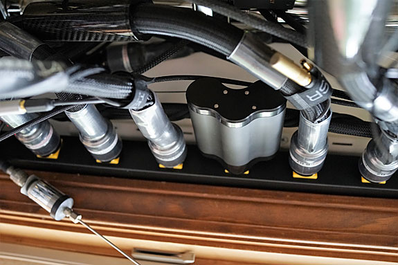 The line of six conditioners starts with the MC-0.5 ($299) and culminates with the model reviewed here at $3499. That's to be compared with my Synergistic Research PowerCell 8 SE with 8 outlets that now retails for $2995 and comes bundled with a High Current Atmosphere Level 2 power cord valued at $1995. I used my JPS Labs In-Wall 30A dedicated line throughout the review. Unfortunately, this line is terminated with a quad head in which each outlet is angled 90 degrees from the next, making it unusable with the MC-1 with its three barrels connected in an arc. This design works great in a single duplex outlet and acts as a cable support for the power cord plugged in above it as seen here. The MC-1 held firmly in every audiophile-grade outlet in which I used it, whether vertical or horizontal. If you're using a builder's grade wall outlet, I strongly urge you to replace it with at least a spec grade outlet, or even better, with one of the many audiophile-grade duplex outlets with a much firmer grip.