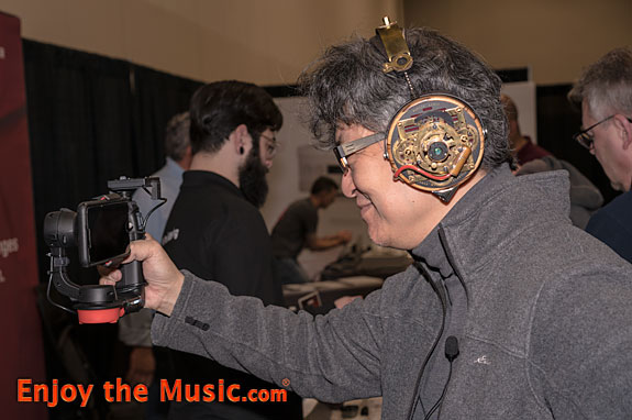 And lastly, the world's most photographed pair of headphones is without a doubt the Audeze LCD-3 Steampunk Edition. Only one pair of these were made by the manufacturer. Close friends of mine, and those attending AXPONA, have fashionably rocked these too!