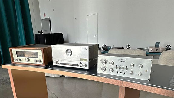 The Marantz event was held at Spring Studios, located in the Tribeca part of Manhattan, New York. It featured a 7000 square-foot interactive, immersive exhibit center and a rooftop VIP party. The exhibit center housed a theater where presentations were given by a variety of guest speakers, a specially constructed listening room, a museum that showcased Marantz's history and product lineage, a headphone audition station featuring Marantz electronics and headphones from its sister company, Denon, and a Vinyl Me Please record store.