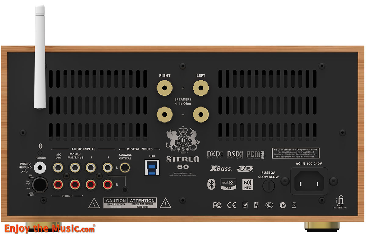 So what is my overall sound impression of the Stereo 50 and LS3.5 system? Balanced, controlled, and neutral. Oh, did I mention the speakers come with both a black and silver grills? Your choice. Just change colors at will. I spent the remainder of my reviewing time, just getting to know and understand the Stereo 50's impressive capabilities. This little shoebox can do it all! What do you want to plug in? Your PC or Mac? No problem! Stream music from your phone via Bluetooth? Done! CD player, DVD player, or Blu-ray player? Check, Check and Check. What about pure analog? You know who you are. Dusting off your old turntable and record collection? The iFi Audio Stereo 50 has an extensive collection of refinements for virtually any turntable you choose to connect. My old Technics SL-D3 turntable was not a challenge for the Stereo 50. As a matter of fact, with the obviously well thought out Phono Input choices available on the Stereo 50, I felt a bit embarrassed hooking up my old Technics (I do have my eye on the limited addition Queen Rega RP1, though). But, considering I no longer have an album cleaner, and an even more questionable cartridge, I kept my phono session as brief as possible. To explain all of your phono options would take the rest of the space I'm allowed in this review. Suffice it say, the excellent manual (available for download from their website) will walk you through all your possible choices; step by step. MC Low, MC High, MM; whatever you have. Cartridge rated output of <0.75mV? Then you select the Mode Switch to MC Low (on the back). >3mV? Then you choose the MM selection. Me? I didn't have a clue. I'm not going to lie. I guessed MC Low and got sound. Phono God I am not... yet. One thing at a time please. The phonostage on the iFi Audio Stereo 50 was not an after-thought as found within so many other products. This was designed from the white paper phase on up. To be honest, I was so impressed with the sheer amount of technology they crammed into this little box, I hope my editor allows me to list the entire list of features: · High-quality wireless Bluetooth (aptX) with NFC for pairing.. · Pure vacuum tube 25W + 25W amplifier. · Pure vacuum tube headphone Turbo 7,000 mW output power; able to drive even the most difficult of headphones. · Native Octa-DSD512 (24MHz), PCM768kHz, 2xDXD, the most advanced digital audio formats available are supported together with all other DSD, PCM and DXD formats available. · Minimum phase, minimum ringing digital filter is employed for PCM up to 192kHz. Pure analog, no-ringing filtering is used for DXD/2xDXD as well as DSD. · High-resolution audio USB, Coaxial, Optical digital inputs. · 3D Holographic Sound Systems for Headphones and Speakers. · XBass for the best bass and dynamically corrects the Bass response to match the human hearing. · Ultra-wide gain range MM/MC phono pre-amplifier, able to match all phono cartridges. · Precision studio-grade tone controls. · Analog volume control with remote control.