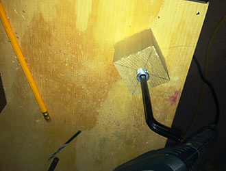 Mark and drill pilot hole for threaded insert as pictured above. Drill correct size hole for the threaded insert. The