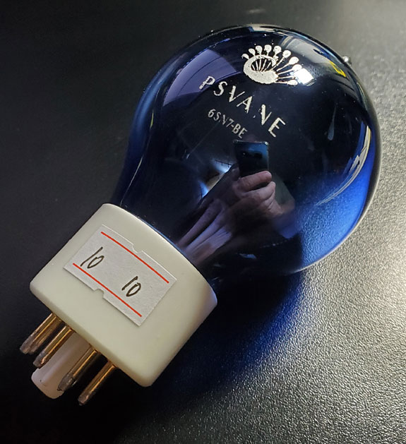 The stock tube set, the 5C3S rectifier, the Psvane 6SN7GT inputs, and the Electro-Harmonix Gold 12BH7 outputs.