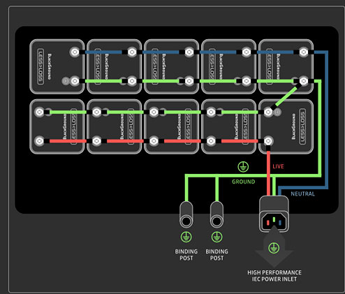 Setting up the Speaker Bases is a little more complicated. They can be connected in two ways. There is an IEC connection just like the original Power Base that allows you to plug directly into your AC circuit with a conventional power cord. However, only the ground pin is active on the Speaker Bases, so you could alternatively use just a ground cable with a banana plug to fit into a banana plug ground input on the Speaker Base on one end and a USA plug on the other end to plug into your wall. If you don't already have a BlackGround 10X Power Base, you must use one of these two methods. Alternatively, you can connect the Speaker Base to the BlackGround Power Base using a LessLoss ground cable which has a high-quality banana plug on each end. The Ground Output of the Speaker Base goes to a banana ground input on the Power Base. Doing this saves you the cost of an IEC power cord. The ground cables are directional with little arrows that should always point toward your AC line connection. If your power amp and speakers are at the far end of the room and plugged into a different outlet, it will make sense to use the power cord option and position the Speaker Base near the power amp. Four speaker signal cables with banana plugs are required to connect to the Speaker Base. They may be attached to the binding posts on the speakers or to the binding posts on the amplifier. Like the binding posts, they are coded red and black, along with directional arrows to ensure proper installation. I found it much easier to connect to the binding posts on the amplifiers, which required shorter (and less expensive) speaker signal cables. It will also be much neater looking, though to facilitate all the testing for this review, I conveniently stacked the BlackGrounds on top of a subwoofer using appropriate isolation.