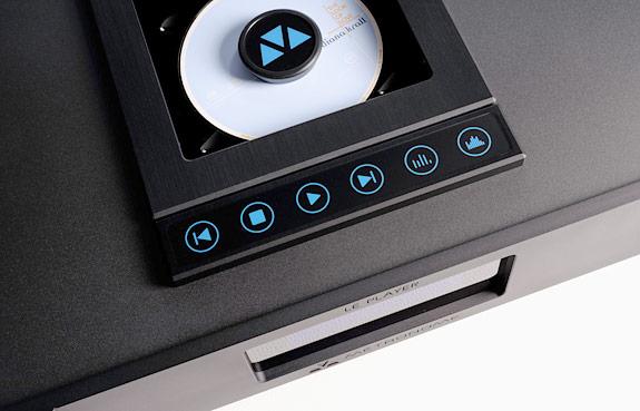 Handsomely packaged in a black aluminum chassis, the Le Player 4+ eschews the ubiquitous front-loaded sliding drawer CD transport arrangement featured on most cheap players in favor of a more robust top-loaded layout. A lightweight magnetized puck holds the CD in place to ensure rotational stability. The 12 kgs (27 lbs.) package boasts a three-toroidal transformer power supply, utilizes Schaffner filters, and features generous supply regulation. The unit rests on three sculpted Delrin cones that channel vibrations away from the chassis.