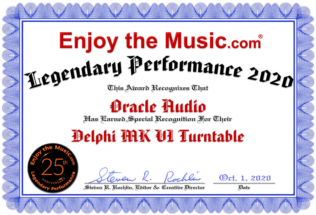 without – they are just better with the new Turbo MK II! I used the SME V ‘arm that was supplied with the Delphi MK VI because I did not request that Oracle send me an armboard drilled with holes to accept my Tri-Planar 6 tonearm. Using the SME rather than the Tri-Planar bothered me not one iota because besides the SME being a great tonearm, a fact that most audiophile should be familiar with is that the sound of an analog playback system is most dependent on the turntable itself – followed by the tonearm, and lastly the phono cartridge. Of course, everything matters, but upgrading ones tonearm or cartridge is just that, an upgrade. One should not expect a tonearm or phono cartridge (or a power supply, for that matter) to change the intrinsic sound of a turntable, only improve (or degrade) it. Of course, it is common audiophile wisdom that tonearms and phono cartridges are extremely important links in the analog front-end chain, so difference between a merely good tonearm or cartridge and a great tonearm or cartridge can and will make the difference between merely good analog front-ends great ones. But to put things in perspective: If one were to somehow mount a current production SME tonearm with a Lyra phono cartridge on a $69 department store turntable from 1976, one should not expect the resulting sound to be any better than the sound one gets from a $69 department store turntable. Conversely, it would be poor judgment not to mount a good phono cartridge on a more than decent tonearm on a high-performance turntable. I used my own Lyra Kleos MC phono cartridge, and at the very least, using it should diminish the amount of variables that I would have to deal with to write my review of the Delphi MK IV. The SME V tonearm used a phono cable with a DIN plug on one end, RCAs on the other, and Oracle supplied a Van den Hul phono cable for this review. Other cables in my system besides the Van den Hul phono cable were interconnect and power cables mostly from MIT, and some by Virtual Dynamics, DH Labs, and Audio Art. The Van den Hul phono cable was connected to the RCA inputs of the phono preamplifier that's been in my system for a while, the very versatile and transparent Pass Laboratories XP-15. I used a few different preamplifiers and linestages, ranging from not using one at all – instead relying on the variable output of the Benchmark Media DAC1USB digital-to-analog converter – and I also used a Balanced Audio Technologies (BAT) VK-3i preamplifier and a Red Wine Isabella linestage, and both tubed units. These were connected to either a Pass Labs X350.5 solid-state power amplifier or PrimaLuna monoblock tube amps. The Pass Labs amp was used when I had the Sound Labs DynaStat hybrid electrostatic speakers in the system, the PrimaLunas when I listened to the Venture Audio Encore dynamic floorstanders, both speaker systems usually augmented by a Velodyne HGS-15b sub. The Delphi MK VI turntable's power supply was connected directly to a Virtual Dynamics wall receptacle that was one of two dedicated power lines that supplied the AC to the listening room. The room is treated with Echobuster acoustic panels, and the lighting provided by a mixture of incandescent and fluorescent lights at night, but mostly sunlight during the day. Oracle makes available two types of clear acrylic dust covers for the Delphi MK VI, one that attaches via hinges and a full dust cover that one removes during play. I highly recommend the latter. The nice people at Oracle stated via email that using the dust cover that is attached to the Delphi MK VI and positioning it perpendicular to the turntable during operation will not adversely affect the sound of the turntable. Go ahead and call me a skeptic, but I'm certain that I'm not the only audiophile that believes that dust covers that are attached to a turntable during play are not a good idea since it will act as a sonic vibration sail. Occasionally blowing off the turntable with compressed air and dusting its flat surfaces isn't such a daunting task, but again, if one (or one's significant other) really wants a dust cover, go with the full dust cover that doesn't attach to the body and is removed during play.