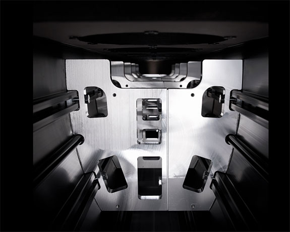 The first step was the housing. To give the bass more depth and higher power reserves with lower distortion – thus more clarity and punch –, it is slightly larger than that of its quasi-"predecessor" 711. Due to the increased volume, it also had to be reinforced in a different way. The aluminum extrusion of the housing is now subject to controlled tension, in order to eliminate vibrations. The shape of the cabinet has also been optimized from an acoustic point of view, particularly the rear sound component in the lower midrange is now absorbed better, as the Swiss manufacturer promises.
