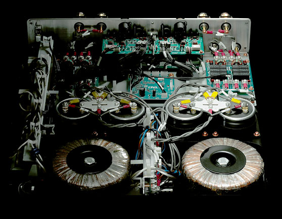 Chassis In addition to the beefy appearance of the TAD M1000 power amplifier was its heft. At over 60 pounds, I had to remember to lift with my knees, not my back when unpacking this amplifier and lifting it to the lowest rack of my Arcici Suspense equipment rack. TAD designed this power amp with "Dual Logic-Circuit Technology," which ensures that the amp drives speaker diaphragms precisely the same in both its positive and negative circuits, Also, TAD's M1000 amplification circuitry adopts what they call a BTL-type topology (Balanced Tied Load), which resembles two completely independent amplifiers (from the input terminals to the output terminals) connected via a balanced connection. The dual mono structure includes everything, including power transformer positioning, circuit board pattern configurations, and wiring length. This also consists of the power supply circuit, which is designed so that not only are negative and positive power supplies symmetrical, but all power supply circuit channels are independent, including the power supply transformer, rectification circuitry, and stabilization circuitry. The chassis design of the TAD M1000 amp looks sturdy and is sturdy. This amplifier achieves vibration control isolation mounting by adopting a three-point support structure using built-in spike insulation. TAD says that reducing the effects of vibration improves power and clarity and increases the amount of information in the musical signal that arrives via The TAD M1000's inputs.