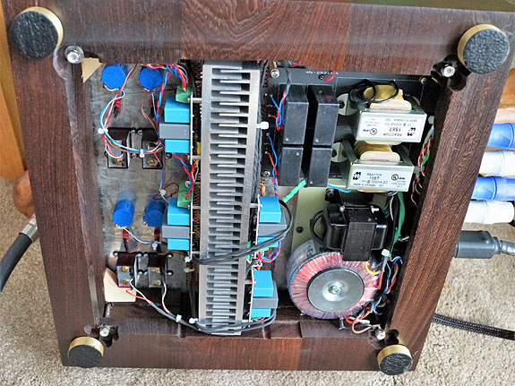 The next item that needs explanation is the tube-powered field coil power supply. Instead of a conventional permanent magnet found in typical dynamic drivers, field coil drivers have a large 'can' at the back end that houses a huge winding of wire, not unlike a transformer, that generates a strong magnetic field when electricity is passed through it. But not just any electricity will do if you're aiming for high-end music reproduction; it must be very clean Direct Current. The field coil is designed to provide a consistently high-powered magnet and the drivers are sensitive to the voltage supplied to them. Changing the voltage will soften or harden the sound and alter the efficiency of the driver as well. Given that the power supply is tube powered, it should be turned on at the start and off again at the end of a listening session to preserve tube life. On one occasion when listening to Hearts of Space on NPR the music was rather annoying which is unusual for this program. Given that the episode was largely electronic music and the quality of the signal sometimes gets disturbed by activity in the ionosphere, I didn't think much of it. Until, that is, I went to shut down the rig and discovered that I had not powered up the field coil power supply. I should have noticed this when I had to adjust the volume higher than usual. With more conventional music you will notice this oversight quickly. You will want to have the power supply where it easily integrates with your start-up and shut-down rituals.