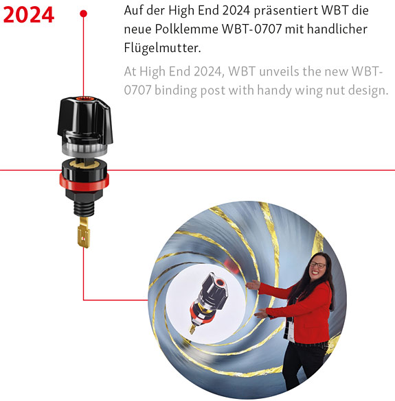 2021 – VDE Certification: Their nextgen speaker connectors achieved VDE certification, a rare accomplishment in the high-end audio sector that underscores a commitment to both electrical safety and mechanical durability. 2023 – Expansion of R&D: With the commissioning of a second PVD system, WBT has further accelerated its research and development efforts by unifying production and development processes under one roof, paving the way for even more rapid innovation.