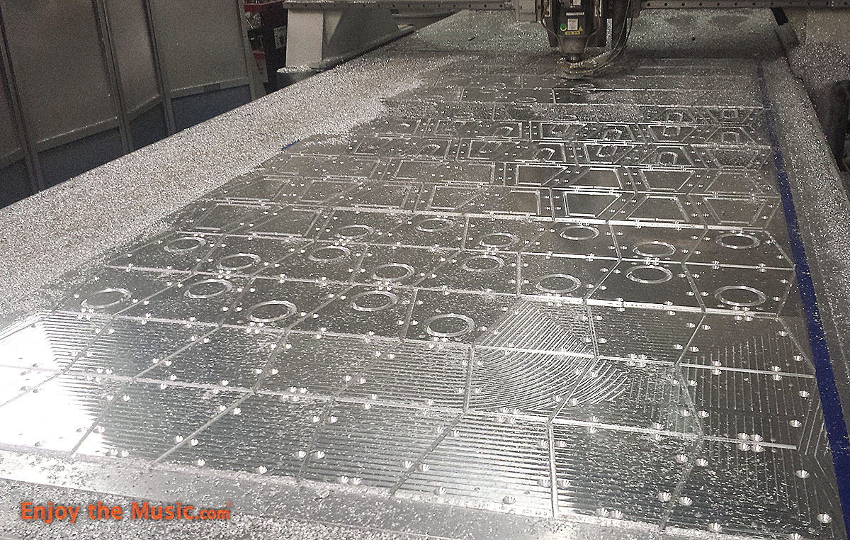 YG Acoustics Designs The tweeter in the Carmel 2 is the same soft dome unit found in the top of the line Sonja, and incorporates proprietary ForgeCore technology, again a product of the special in house CNC cutting machines and their 3D profiling capability. The magnet system typically serves as both its motor and its enclosure. ForgeCore optimizes both functions through the use of computer optimized highly sophisticated 3D geometries in the magnet system. Standard tweeters use stamped or laser-cut motors, which cannot produce these profiles. And is this a great leap forward? What do these advanced technologies bring you, apart from higher costs? For BilletCore woofers, YG claim overwhelmingly superior dynamics, musical delicacy and low distortion, thanks to the high rigidity of the cone and the very tight tolerances this process can achieve. These drivers should also be extremely reliable because of the total lack of weak spots. For the ForgeCore tweeters, YG claim greatly reduced distortion and a sense of ease to the sound. They back up these claims with impressive published measurements of distortion. The Sonja, Hailey and Carmel 2 all feature a new design aesthetic with complex curvature to the cabinets that make them at once both far better looking than the models they replace and significantly more rigid while offering sonic advantages inside and out. The aircraft grade aluminum alloy cabinet has a lustrous black finish and is machined to exceptionally high precision, a big leap over the original Carmel. Another design pillar for all current YG speakers is FocusedElimination anti-resonance technology. This aims to combine the minimized turbulence of a sealed box design with the low friction associated with open baffle designs. The shape of the interior cavities, the bracing, and the almost entire absence of absorptive materials inside the box all feature significantly in this aspect. I could go on. But enough with the technical details.